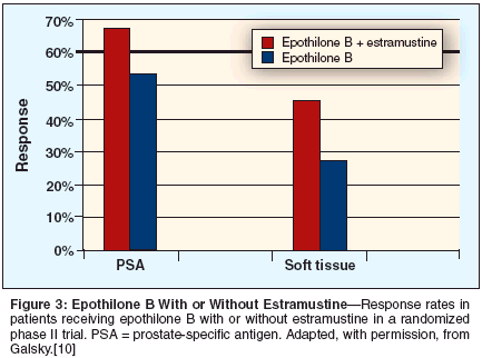 10. Galsky MD, Small EJ, Oh WK, et al: Multi-institutional randomized phase II trial of the epothilone B analogue ixabepilone (BMS- 247550) with or without estramustine phosphate in patients with progressive castrate metastatic prostate cancer. J Clin Oncol 23:1439- 1446, 2005.