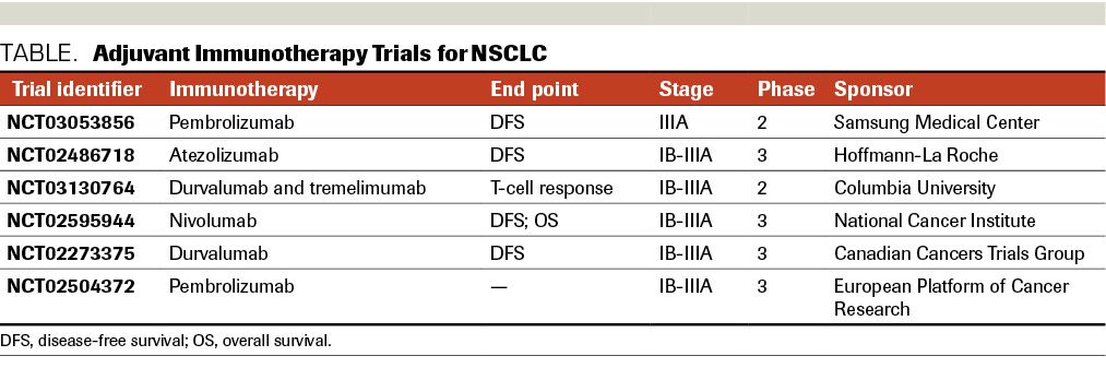 TABLE. Adjuvant Immunotherapy Trials for NSCLC