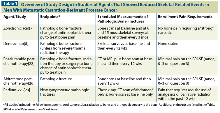 Table 1: Overview of Study Design in Studies of Agents That Showed Reduced Skeletal-Related Events in Men With Metastatic Castration-Resistant Prostate Cancer