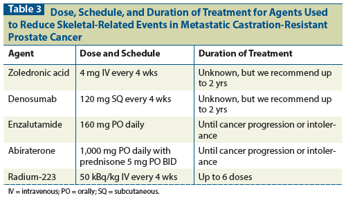 Table 3: Dose, Schedule, and Duration of Treatment for Agents Used to Reduce Skeletal-Related Events in Metastatic Castration-Resistant Prostate Cancer
