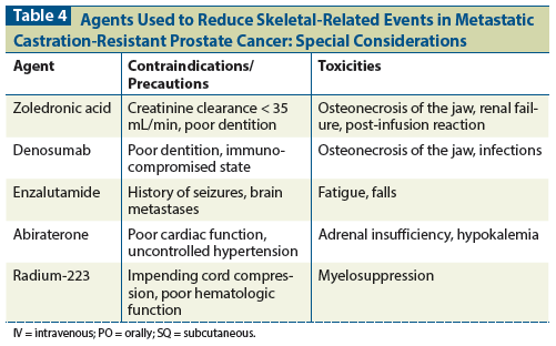 Table 4: Agents Used to Reduce Skeletal-Related Events in Metastatic Castration-Resistant Prostate Cancer: Special Considerations