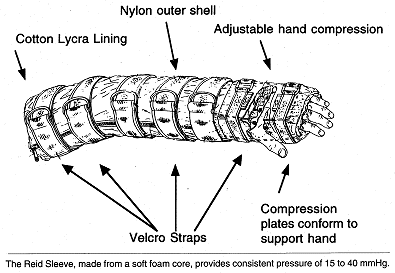The 27 patients who showed improvement had a 3 cm average decrease incircumference at 10 cm above and below the elbow. In addition, the majorityof patients reported improvements in quality of life with use of the ReidSleeve.
