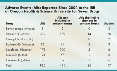 To assess the potential impact of thenew policies, we reviewed AEs reportedsince 2004 to the IRB at Oregon Health& Science University for seven drugs (seeTable).