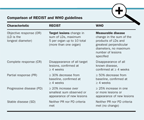 In contrast, the World Health Organization (WHO) has a different standard for assessing response.