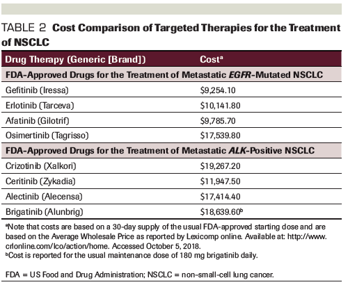 Table 2. Cost Comparison of Targeted Therapies for the Treatment of NSCLC