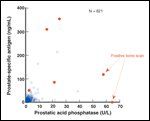 Scatter Plot of Prostate-Specific Antigen vs Prostatic Acid Phosphatase