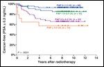 Dattoli and colleagues have recently found that an elevated PAP is the single strongest independent predictor of prostate cancer-specific death.[41,51] Patients with elevated pretreatment PAP had a 12-year cancer-specific survival of 45% vs 82% for those with a lower PAP (Figure 4). Of note, the Dattoli cohort was a higher-risk group with particularly good local control. It appears that, in reviewing the above studies, PAP performs best in patients who, if they fail, are most likely to fail distantly.