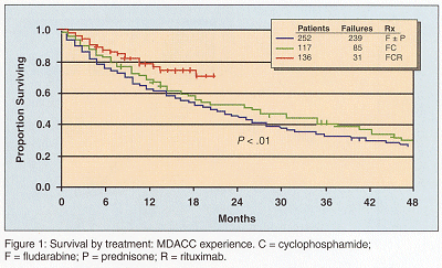 Compared to historical data on CLL patients treated with fludarabine/cyclophosphamide, the FCR combination prolonged survival (see Figure 1). Adding rituximab increased not only the ORR but the proportion of those responses that were complete remissions, according to Dr. Garcia-Manero.