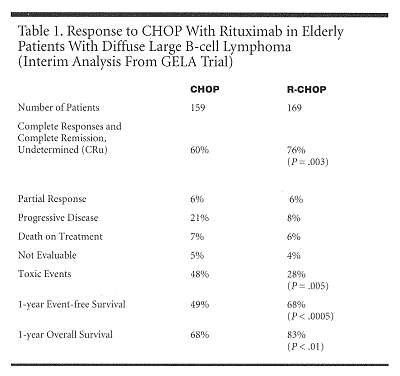 The Groupe d’Etude des Lymphomas de l’Adulte (GELA) study compared classic CHOP with CHOP plus the anti-CD20 monoclonal rituximab. The study included more than 130 centers in France, Belgium, and Switzerland.