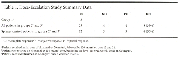 "We clearly saw better results with patients who had been splenectomized, even in this limited sample size. Responses were seen in patients who received the 150-mg/m² dose on week 1 followed by three weekly doses of 375 mg/m², as well as the 375 mg/m² every week × 4 full-dose treatment," Dr. Saleh said.
