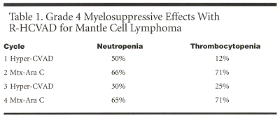 As expected, most toxicities were hematologic (see Table 1). "Even though there was a high percentage of grade 4 neutropenia," Dr. Romaguera related, out of more than 140 courses of treatment given, only 11% of episodes were grade 3 or greater infection and the percentage of grade 4 toxicities was small.