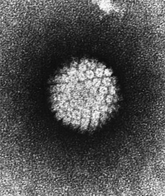 Electron micrograph of a negatively stained HPV