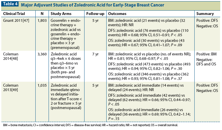 Table 4: Major Adjuvant Studies of Zoledronic Acid for Early-Stage Breast Cancer