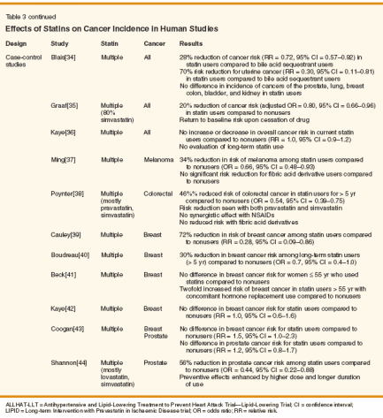 34. Blais L, Desgagne A, LeLorier J: 3-hydroxy-3-methylglutaryl coenzyme A reductase inhibitors and the risk of cancer. Arch Intern Med 160:2363-2368, 2000.