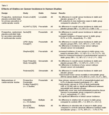 36. Kaye J, Jick H: Statin use and cancer risk in the General Practice Research Database. Br J Cancer 90:635-637, 2004.