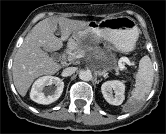 Pancreatic cancer in CT; source: Hellerhoff, Wikimedia Commons