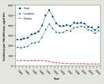 Ecologic evidence supports the presence of overdiagnosis with PSA screening. An effective early detection strategy should “pull” advanced cancers out of the future and permit treatment at an earlier stage, thus preventing late-stage tumor development. With such a strategy, one should observe a clear association between an increase in early-stage cancers and a decrease in late-stage disease for a given screened population over time, ideally at a 1:1 ratio. A signal that overdiagnosis is occurring is the appearance of a large increase in the incidence of early-stage tumors with the introduction of the new screening test (as is necessary-but not sufficient-for a successful early detection program), but without a decline of similar magnitude in the incidence of late-stage disease. The US SEER database demonstrates this exact scenario in prostate cancer (Figure). For US men aged 40 years and older, the incidence of localized prostate cancers increased from 184 cases per 100,000 men in 1983, to a peak of 416 cases per 100,000 men in 1992 (shortly after the widespread introduction of PSA testing); in 2006, the incidence was 352 cases per 100,000 men. Although one can observe a decline in the incidence of distant prostate cancer diagnoses, the absolute rate of the reduction represents a tiny fraction of the persistent associated increase in early-stage disease. The net increase in early-stage disease for the period 1983 to 2006 is 168 cases per 100,000 men, whereas the net decrease in late-stage disease is only 33 cases per 100,000 men: this represents an excess of more than 100 early-stage diagnoses per 100,000 men during this time. [19] A recent study using the SEER database has estimated that since the widespread introduction of PSA screening in the late 1980s, 1,305,600 additional men have been diagnosed with prostate cancer and 1,004,800 additional men have received definitive therapy, compared with what would have been expected in the absence of screening. However, the decline in the prostate cancer mortality rate during this time period does not approach the magnitude of change just described.[20] In addition, the decline in mortality occurred concomitantly with increasing use of therapies known to improve mortality outcomes, such as hormonal therapy.