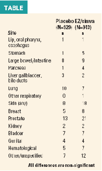 Dr. Pedersen noted that the cancer-related findings of the SEAS trial are based on small numbers and could be due to chance. He also noted that the diff erences between the treatment and placebo groups did not relate to any particular type of cancer and did not become larger with more prolonged treatment (see Figure).