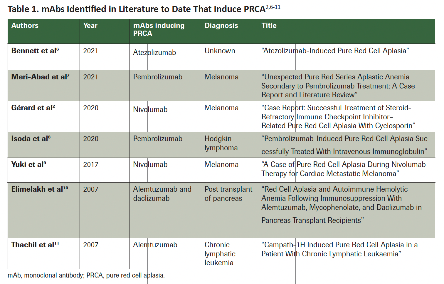 Table 1. mAbs Identified in Literature to Date That Induce PRCA2,6-11