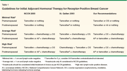 Aapro MS: Adjuvant therapy of primary breast cancer: A review of key findings from the 7th International Conference, St Gallen, February 2001. Oncologist 6:376-385, 2001. Campos SM, Winer EP: Hormonal therapy in postmenopausal women with breast cancer. Oncology 64:289-299, 2003.
