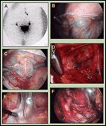 Figure 2E shows an unusual sentinel node location in the left presacral area. In that case, no sentinel nodes were identifed upon thorough exploration of the left retroperitoneal area; however, scanning of the lower paraaortic region with the laparoscopic gamma probe identified a hot area with a faint blue stain in the left presacral area (Figure 2E). Detailed exploration confirmed the presence of a sentinel node medial to the common iliac vein, which was pale blue and very hot. Note the complete dissection of the common iliac artery (Figure 2F). This case illustrates the importance of a thorough sentinel node search and the advantage of the gamma probe when no blue nodes are identified. Unusual lymphatic drainage sites probably explain some situations where all the pelvic nodes removed in a patient are negative, yet the patient develops a recurrence in the lower para-aortic region sometime later.