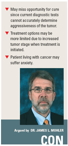 “However, I am not sure that we can easily place an age for the end of prostate cancer screening or treatment,” Dr. Mohler explained. “I have known men at age 75 with a 20-year life expectancy and men at age 60 with only a five-year life expectancy. I think that we need to get better at determining how to identify the men for whom immediate treatment is necessary, and this requires accurate estimation of both life expectancy and the limitation to that life expectancy posed by prostate cancer.”