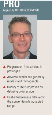 Dr. Seymour pointed out that with the exception of higher rates of grade 3-4 neutropenia and a modest increase in infections with maintenance, rates of adverse events did not differ.