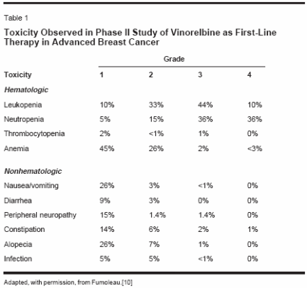 Domenech GH, Vogel CL: A review of vinorelbine in the treatment of breast cancer. ClinBreast Cancer 2:113-128, 2001.