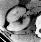 Serial CT image of renal cell carcinoma with growth in VHL demonstrates a subtle lesion deep in the renal parenchyma (arrow).