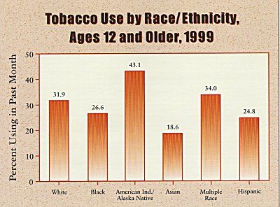 American Indians and Alaska Natives were more likely than any other race/ethnicity groups to report the use of tobacco products, while Asians had the lowest rate (see Figure).