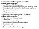 Selecting patients who should be placed on enteral feedings should be based on a number of concerns. The characteristics of appropriate vs inappropriate candidates are illustrated in the following table.