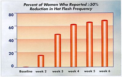 Of the original 30 women, 27 completed the 6-week study. The mean reduction in hot flash frequency was 67%, and the mean reduction in severity was 75%. There was also a statistically significant improvement in depression, sleep, anxiety, and quality-of-life scores.