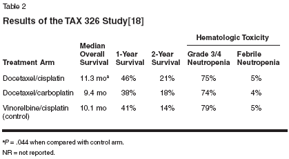 Belani CP, TAX 326 Study Group:Docetaxel in combination with platinums(cisplatin or carboplatin) in advanced metastaticnon-small cell lung cancer. Semin Oncol29(suppl 12):4-9, 2002.