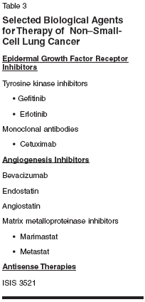 Patients with locally advanced or metastatic nonSMQ-8211-SMQsmall-cell lungcancer (stage III and IV) who are not candidates for surgery and exhibitgood performance status are typically treated with concurrent radiationand platinum-based chemotherapy for disease palliation. Platinum-based chemotherapies, used alone or with radiation therapy, offera small but significant survival benefit compared with supportivecare. The incorporation of first-line agents such as gemcitabine(Gemzar), vinorelbine (Navelbine), and paclitaxel, as well as secondlineagents such as docetaxel (Taxotere), in doublet and triplet combinationshas had a further significant therapeutic impact. Randomizedtrials have shown that cisplatin-based therapy in combination with newagents results in improved 1- and 2-year survival rates in patients withadequate performance status. The 1-year survival benefit has significantlyimproved, with greater symptom relief and improved quality oflife in these patients. Thus, delaying disease progression with combinationchemotherapy appears both beneficial and cost-effective in patientswith advanced nonSMQ-8211-SMQsmall-cell lung cancer. Newer approachesSMQ-8212-SMQincluding targeting critical signaling pathways, such as tyrosine kinasereceptors, angiogenesis, and downstream signal transductionmechanismsSMQ-8212-SMQmay provide novel agents with an improved toxicity profileand the potential for better disease management.