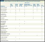 Table 1 lists 19 different systemic malignancies that have been reported to cause MAHA and thrombocytopenia. The conclusions from these data are that MAHA and thrombocytopenia are more frequently caused by the more common malignancies, but many systemic malignancies-perhaps any systemic malignancy-can cause MAHA and thrombocytopenia.