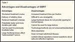 On the other hand, SBRT comes with its own unique disadvantages as well (Table 1). To achieve the increased accuracy with the use of immobilization devices, image guidance, multiple beams, intensity-modulated beam delivery or a combination of any of these, treatment times are increased as compared to conventional treatment. In the case of painful bone metastases, this increased time and planning/delivery requirements can be difficult for the patient to bear. Some patients may require pretreatment pain medication or generalized anesthesia. In certain severe cases, patients will have to forgo treatment with SBRT because of this issue. The increased planning time requirement generally precludes SBRT from being used in the treatment of emergent cord compressions.
