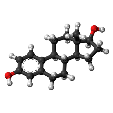 Ball-and-stick model of estradiol, which has previously been linked to increased breast cancer risk