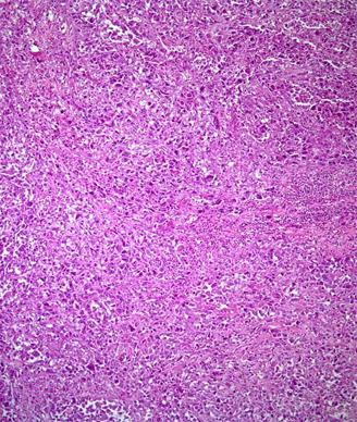 Anaplastic thyroid carcinoma showing solid sheets of tumor cells.