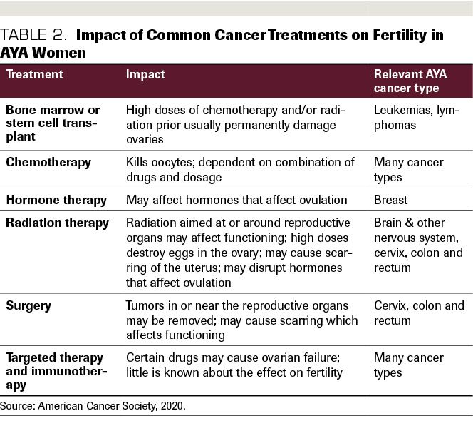Table 2. Impact of Common Cancer Treatments on Fertility in AYA Women
