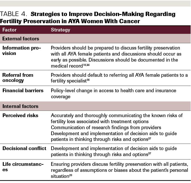 Table 4. Strategies to Improve Decision-Making Regarding Fertility Preservation in AYA Women With Cancer