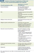This review covers symptoms and complications in patients with late-stage pancreatic cancer, including venous thromboembolism, anorexia-cachexia, pain, and depression.