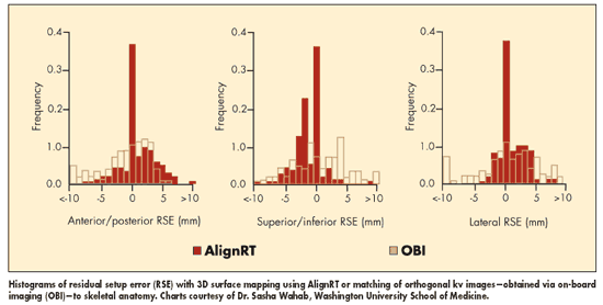 In the study, residual setup error was less with AlignRT than with either lasers or OBI, although still no more than 5 mm with the latter methods, he noted.