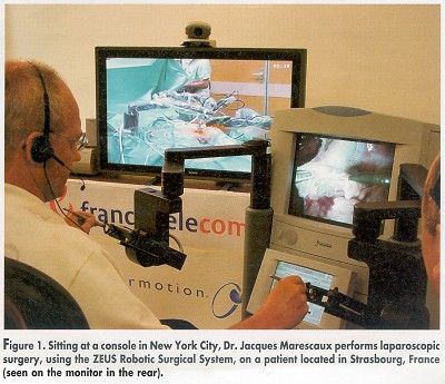 Lead author Jacques Marescaux, MD, of the Department of Digestive Surgery, University of Strasbourg, France, reported that, following six laparoscopic remote robotic cholecystectomies in pigs, the procedure was successfully carried out in a 68-year-old female patient.