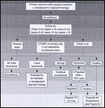 If there is no evidence of disease after 2 years, patients are then followed in a similar fashion every 6 months. At 5 years, yearly examinations and chest radiographs are sufficient.