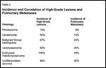 Incidence and Correlation of High-Grade Lesions and Pulmonary Metastases