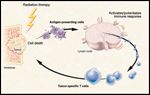 Antigen Release From Dying Tumor Cells Can Activate Immune Responses-Irradiation induces death of cancer cells. As these cells die, they are taken up by scavenger cells called antigen-presenting cells. These antigen-presenting cells then travel to regional lymph nodes where they present antigen to T cells, initiating or potentiating an antitumor immune response. Activated tumor-specific T cells can then traffic to areas of tumor to participate in immune-mediated tumor killing.
