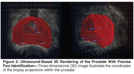 TRUS is currently the most commonly utilized imaging modality to guide prostatic biopsy and minimally invasive therapeutic options. Several modifications to the ultrasonic image, such as the use of elastography[13] and color Doppler, have not as yet produced a significant rise in accuracy for detecting and localizing prostate cancer foci. The foremost advances in ultrasound over the past decade have been focused on the rendering and segmentation of the ultrasonic image into a three-dimensional (3D) representation of the prostate.