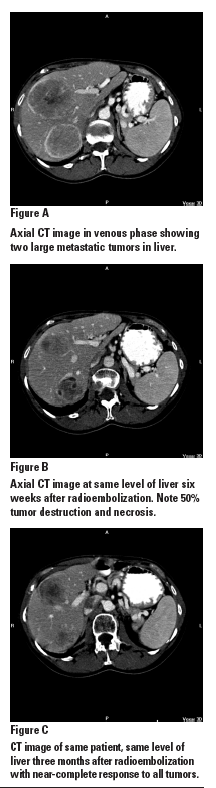 In our practice, we mostly use microspheres without concurrent chemotherapy, as a majority of patients are on a chemotherapy “break” to recover from some side effects, or their cancer is not responding to the current “best” chemotherapy. Many less common tumors that do spread to the liver are also being eradicated. This is rewarding, since we are able to provide patients with a better quality of life with fewer side effects while in treatment and extend their life expectancy despite a disease state for which no treatment was previously available.