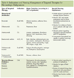 The management of leukemias and lymphomas now includes the use of many targeted therapies. More targets are being discovered and therapies developed to better manage these hematologic malignancies. Nurses need to have an understanding of the targeted therapies and their side effects so they can appropriately manage the side effects that their patients with leukemias and lymphomas may experience (see Table 3).