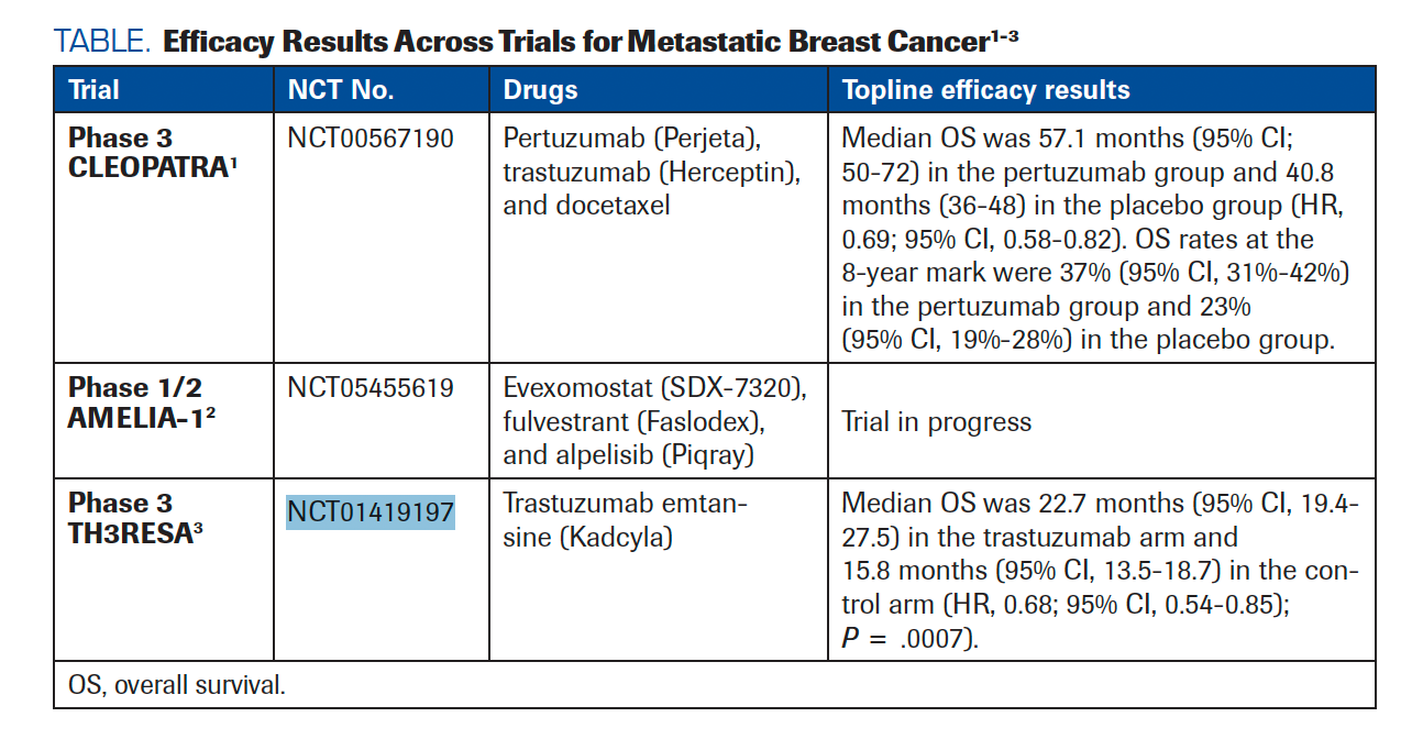TABLE. Efficacy Results Across Trials for Metastatic Breast Cancer1-3